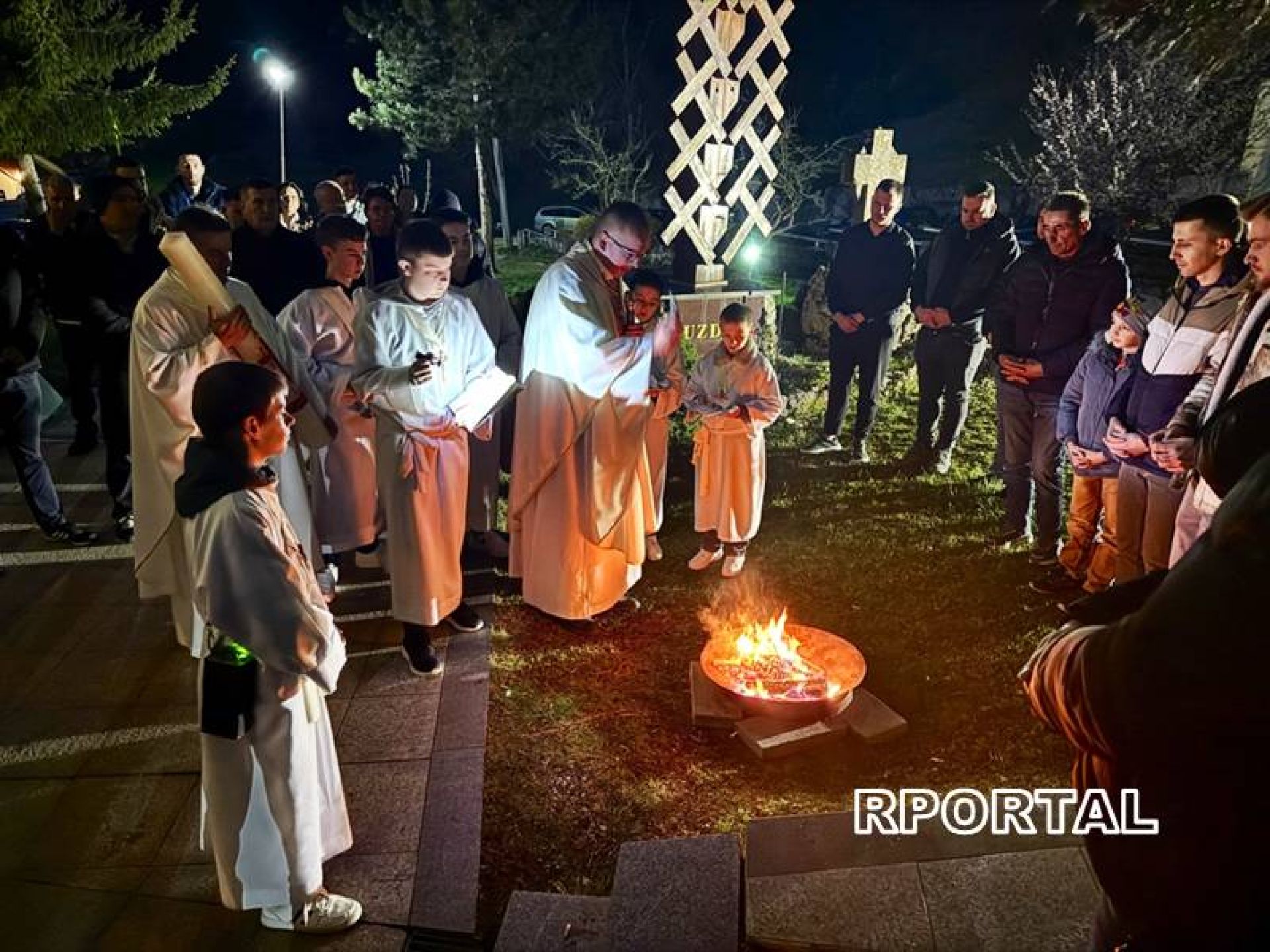 Tako je i u župi Uzdol, na samom početku, održan blagoslov vatre. Blagoslov vatre podsjeća na gorući grm iz kojega je Bog govorio izraelskom vođi Mojsiju i otkrio svoje ime: "Ja sam koji jesam". Od te vatre svećenik pali Uskrsnu Svijeću koja označava Uskrslog Krista.